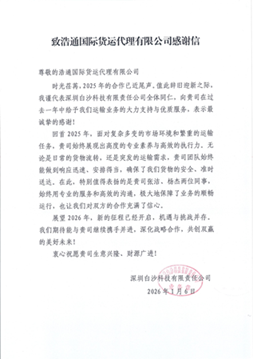 攜手同行,共創(chuàng)雙贏 | 浩通國際獲深圳白沙科技誠摯感謝信